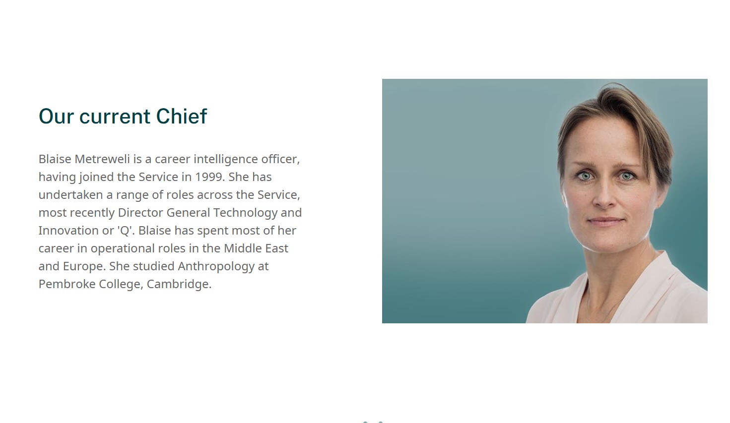 Mansfield Cumming yang awalnya menandatangani setiap suratnya dengan huruf “C”. Setelah itu, kepala MI6 kemudian dikenal sebagai “C”. Tahun ini MI6 membuat sejarah baru dengan memilih perwira intelijen perempuan, Blaise Metreweli, sebagai kepala MI6 pada Oktober 2025 lalu.